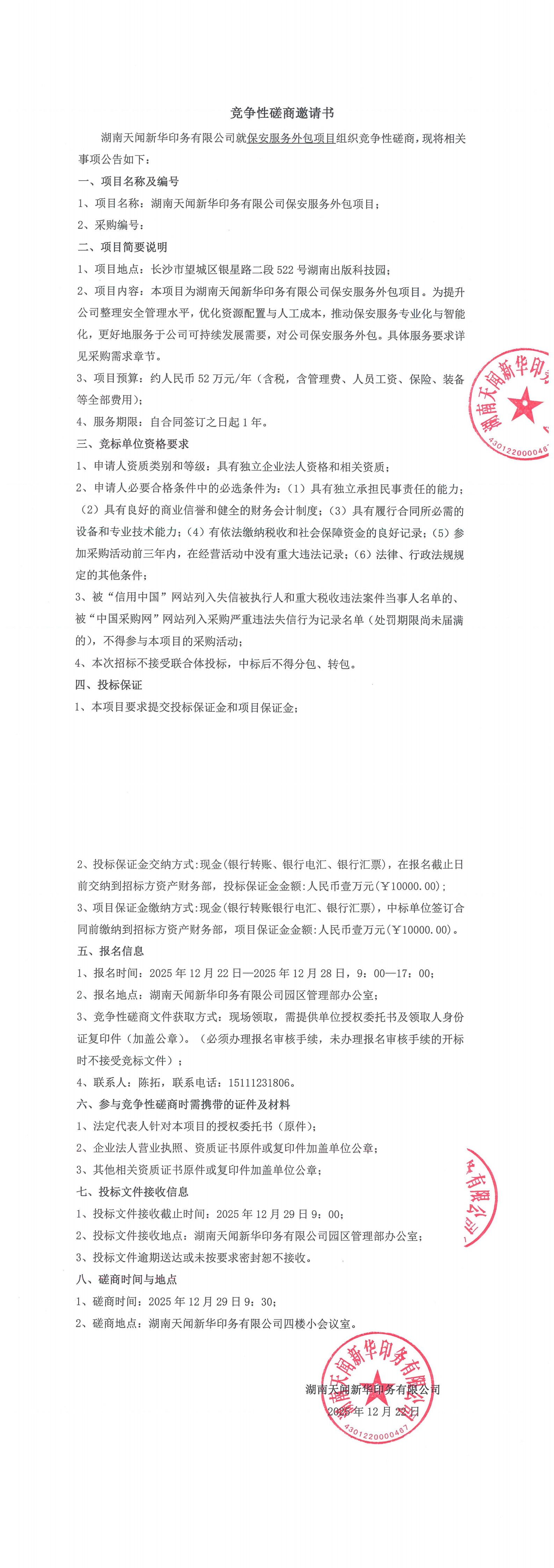 天闻印务保安服务外包项目竞争性磋商邀请书
